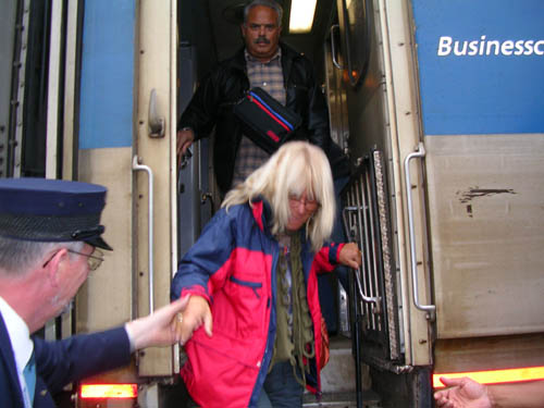 03. heute holen wir unsern Camper ab. Diesmal fahren wir aber mit dem Zug in Richtung St. Louis. Ist eine absolut bequeme Art und Weise zu reisen. Der Zug ist komfortabel und hält auf der ganzen Strecke von 300 Meilen nur zwei Mal. Leider hab ich mein Laptop nicht mitgenommen, da ich nicht wußte, welche Möglichkeiten hier im Zug geboten werden. Die Landschaft ist fast die ganze Strecke flach, und das Wetter ist regnerisch. Wäre man nicht so aufgeregt, hätte man bestimmt bequem bis zur Ankunft schlafen können |